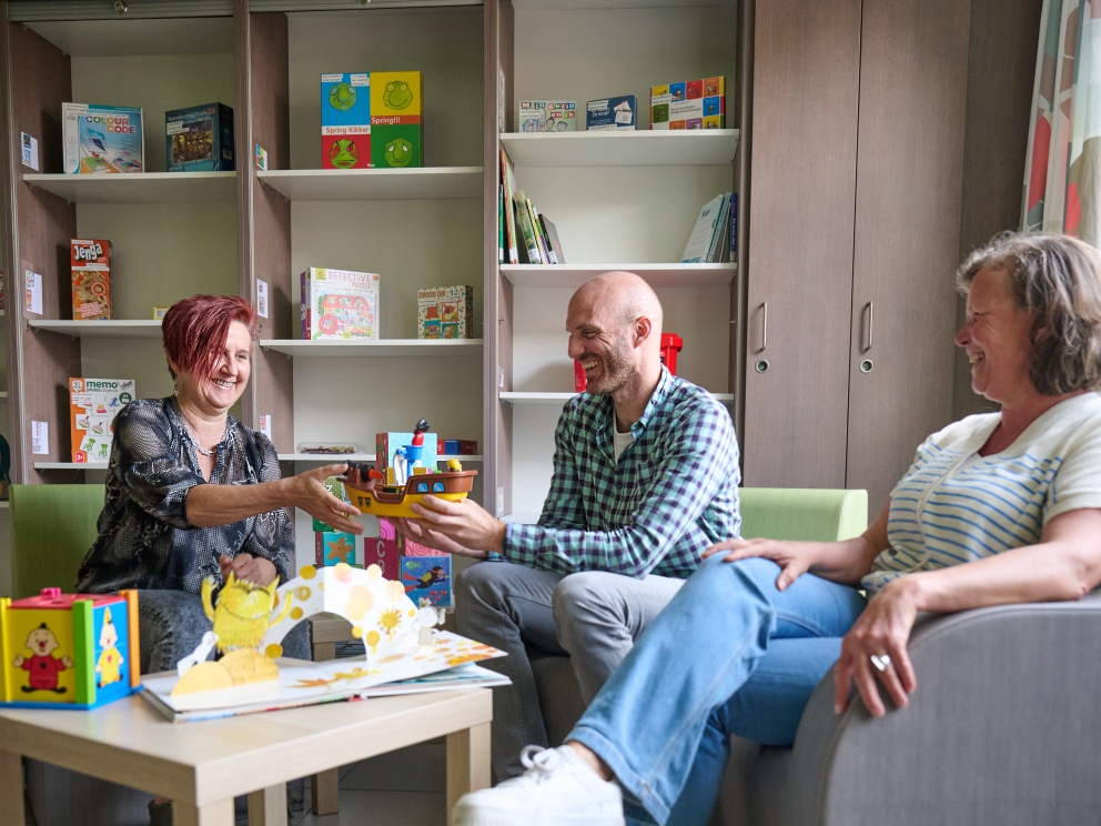 Want samen spelen en een leuke tijd beleven is niet altijd vanzelfsprekend als mama of papa opgenomen is in een psychiatrisch ziekenhuis. Ook familiegesprekken kunnen hier plaatsvinden. Wil je gebruik maken van de Familiekamer? Spreek erover met een maatschappelijk werker.